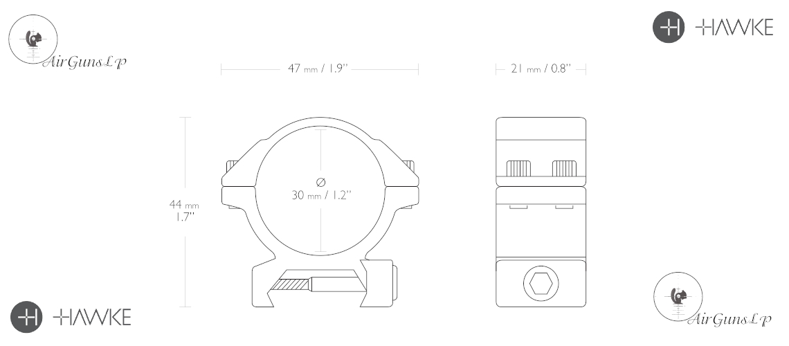 Anillas Hawke de grado Match fabricadas en aluminio de alta calildad, para riel Weaver/Picatinny, 30mm, y perfil bajo.